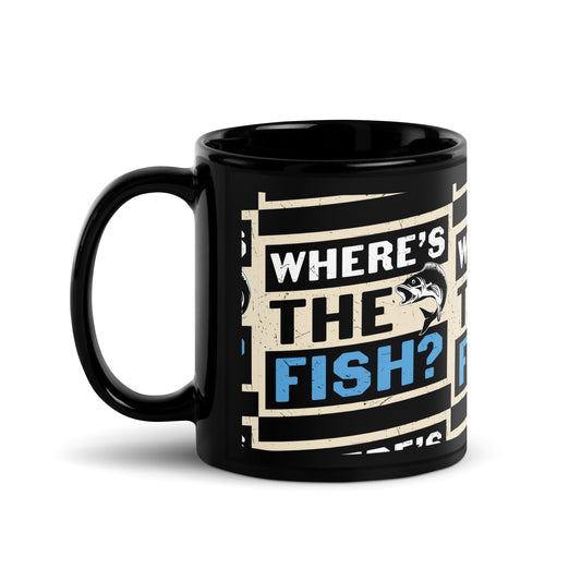 Where's The Fish Black Glossy Mug